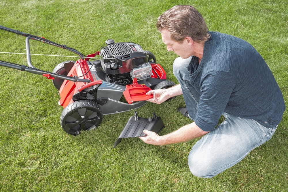 - Функція 4в1 пропонує косіння, збір, мульчування та боковий викид скошеної трави газону.